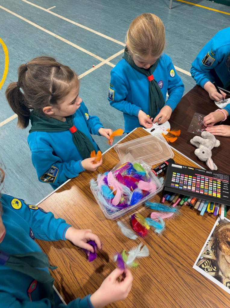 Our Beavers were challenged to become film set designers for the evening, working towards their Teamwork and Creativity badges. New leader, Amelia, runs a film and TV prop house so brought in real movie props to provide some inspiration.
